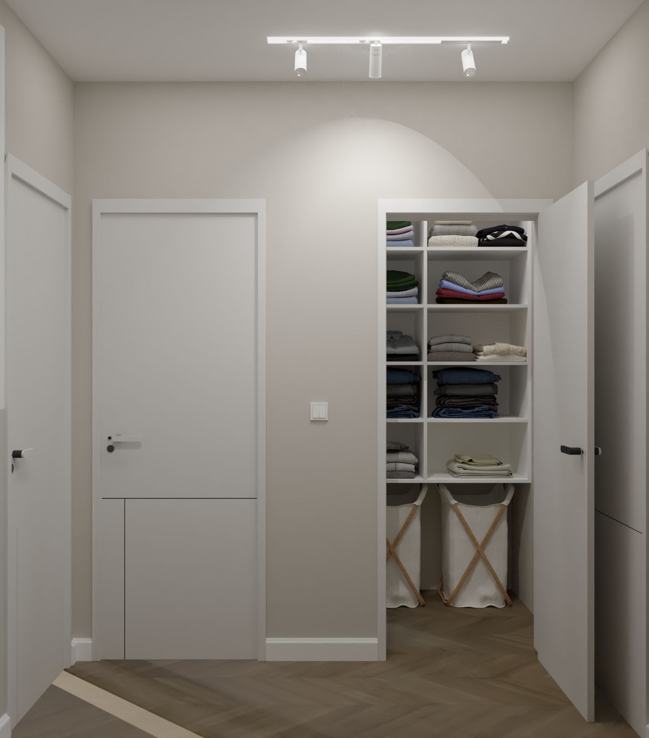 Представям ви един от най-новите ни цялостни проекти “Modern Classic”– двуетажна къща в София. Първият етаж съчетава простор и функционалност, а холът с кухнята е сърцето на дома – светло, уютно и с ясно изразена модерна естетика. Изчистени линии, тъмно дърво за дълбочина и златни акценти за характер – всичко е подчинено на идеята за елегантен, но топъл интериор, в който ти се иска да останеш по-дълго.